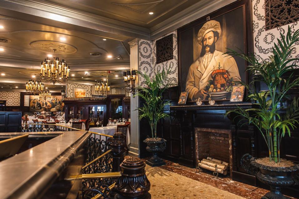i Dag Delmonico er bevart rester av hver epoke da det åpnet, og det er et stort sted med en stor feit velkommen for alle., Det er en «Smak av Klassikere» på lunsj for kr 45, en ganske omfattende Grill Bar-Menyen, og den viktigste spisesalen menyen som har en overdådig kjølt sjømat «chateau,» signaturen Delmonico biff, makaroni og ost fylt med kongekrabbe, og enorme desserter, med en New York-style cheesecake og festlig bakt Alaska.