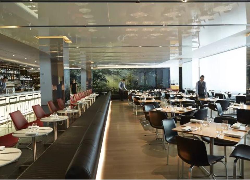 Ingen by har noe som ligner en rikdom av beholdninger som Museum of Modern Art, med sin fantastiske Sculpture Garden utover en glassvegg. Så en hvilken som helst restaurant emplaced i denne ærefrykt-inspirerende institusjon hadde bedre passer perfekt inn i karakter og stil på plass., Ikke som Moderne, så flott i sollys som i starlight, rett ved siden av Hagen. Restauranten ble designet av Bentel & Bentel (samme arkitektene bak Le Bernardin).